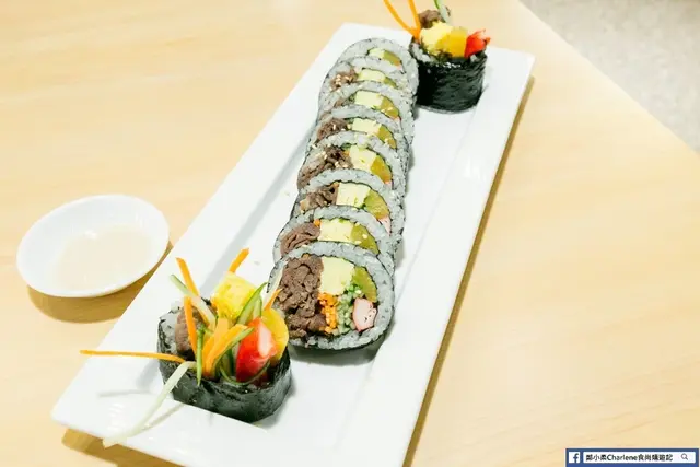 紫菜包飯裹著醃製入味並帶有特殊口感的韓國烤肉,