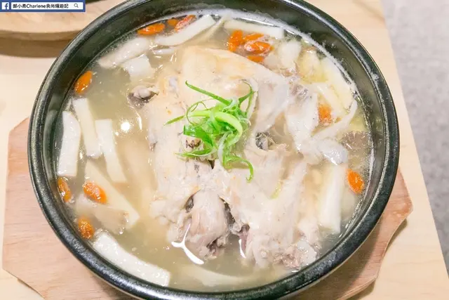 可補身補元氣,人蔘雞湯料多,湯頭溫潤甘醇,口味極佳。