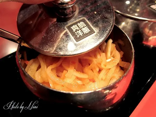 最突出的一大片像是珊瑚的炸物是炸金針菇,還有油豆腐、魚丸、鮮蝦、高麗菜、蕃茄塊以及口感不柴但筋咬不斷的梅花豬肉片