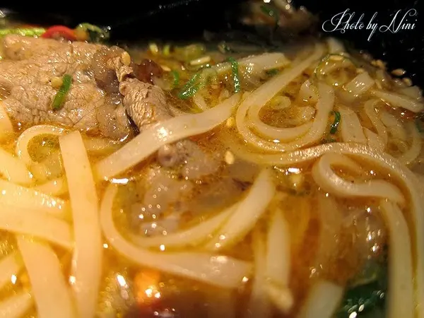 牛骨高湯加入沙茶味道重卻不油膩,灑上些許白芝麻、蔥花提味