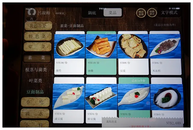 現在許多火鍋店都流行讓大家自己拿著ipad點餐~省去雙方等待的時間也挺不錯的!