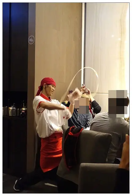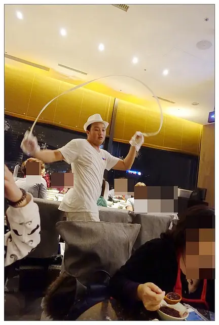 不僅可以把撈麵當做圍巾(笑)在客人周圍繞來繞去