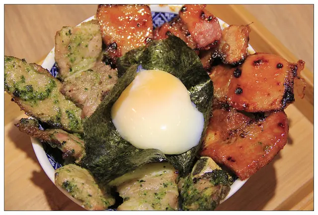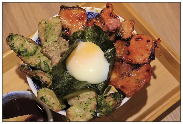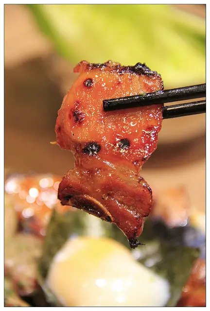 選用台灣豬子排,肉質嫰Q富嚼勁,一次呈現赤味噌及青醬雙重口味