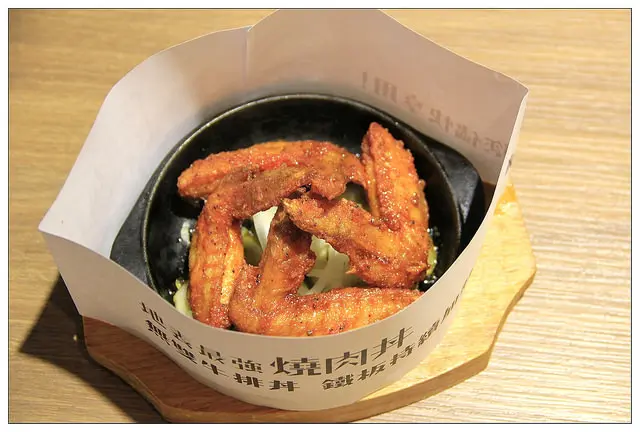 首先上桌的是鐵板燒雞翅~服務生會在桌邊淋上照燒醬