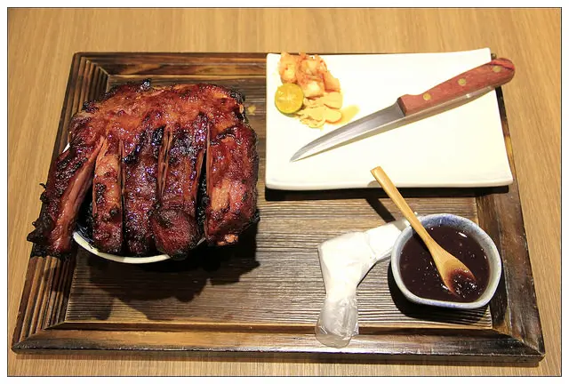 烤肋排會貼心的稍微處理過~在切的時候不太需要花費太大的力氣