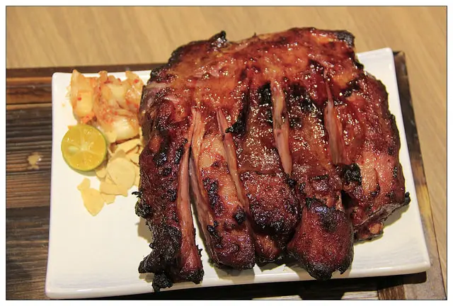 豬肋排厚度十足~塗上日式照燒醬汁後下去炭烤~
