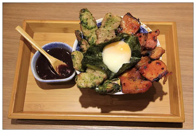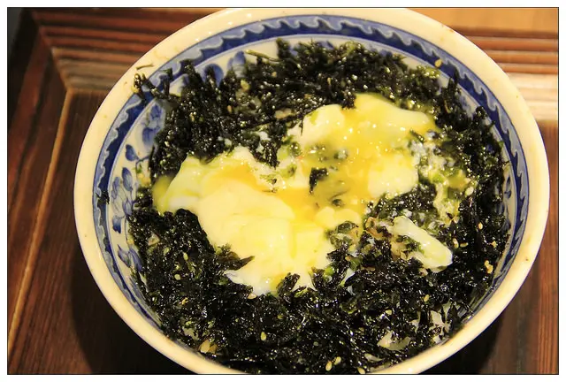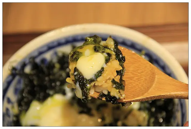 軟滑可口的蛋液拌入淋上醬汁的Q彈米飯再加上酥脆的海苔酥