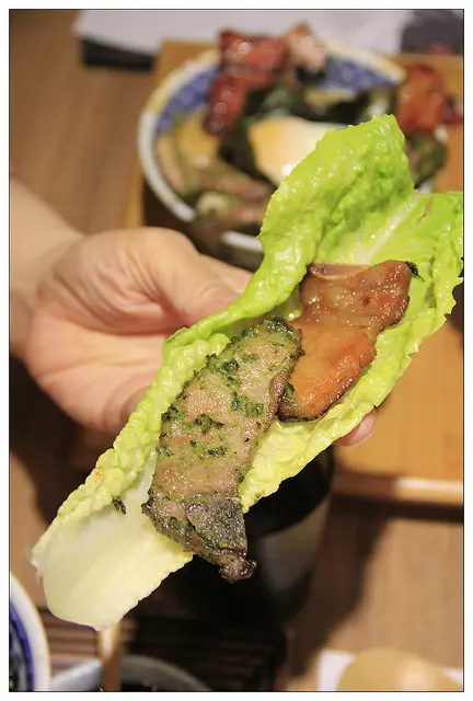 若是單吃五花肉覺得太鹹的話~就可以像小菲這樣用生菜包肉來吃