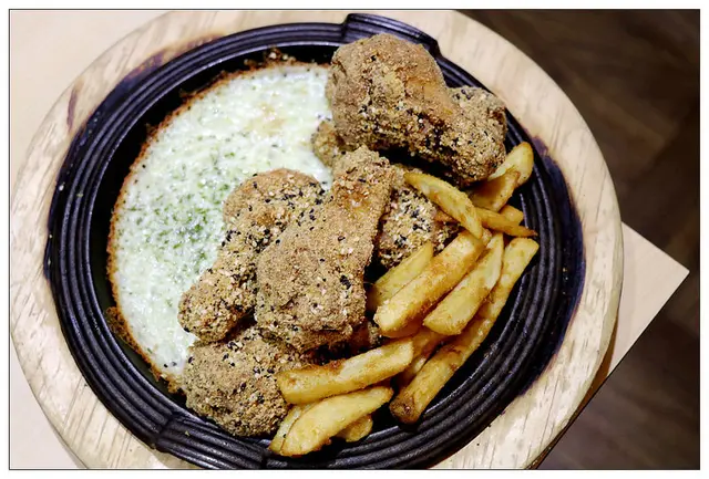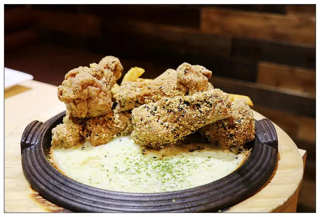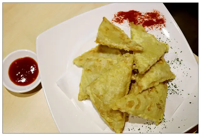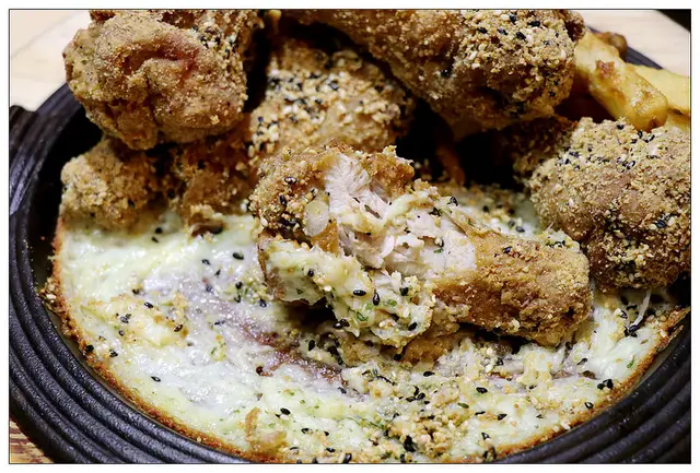 外層的炸衣是韓國煎餅粉~吃起來不油膩且酥脆~我個人還蠻喜歡的唷!