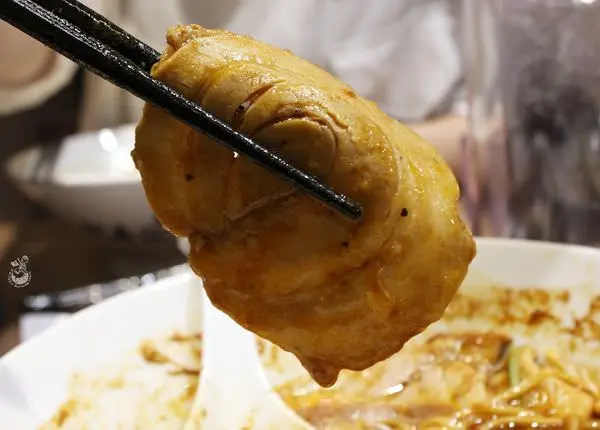 外皮的部分色澤黑黑的有點類似烏骨雞…….看來是有些焦掉了……