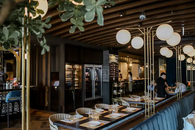 好喜歡木質調配上孔雀藍的裝潢調性,加上一些金線條的裝飾及燈飾點綴,很有復古摩登的感覺