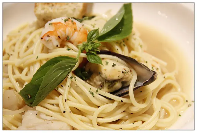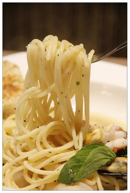 煮到軟硬適中的麵條吸附著清爽的白酒醬汁吃起來滑溜順口又鮮味十足