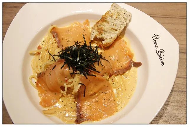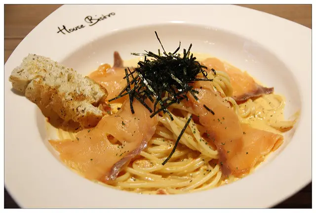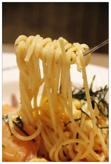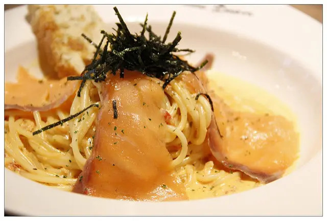 而且軟硬度適中的義大利麵吃起來除了有明太子的鮮味還有燻鮭魚的香氣