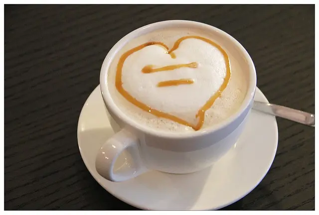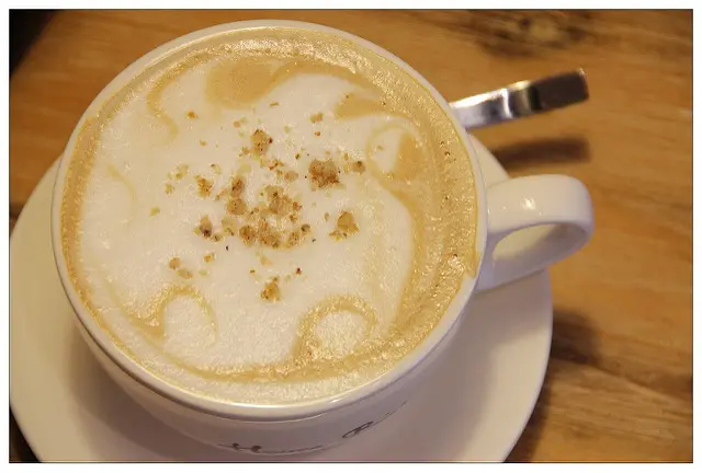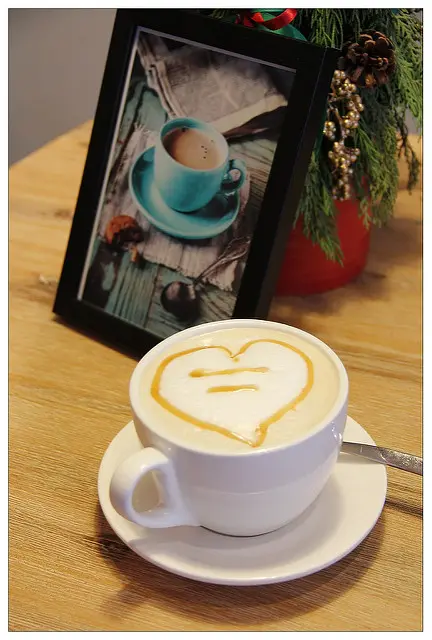 其實就是在奶泡上方用焦糖畫了個愛心~但畫的有點歪捏XD