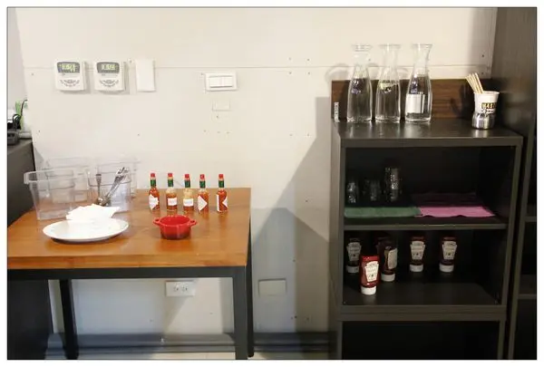 這裡的用餐方式是採半自助式~~調味料及水杯自取