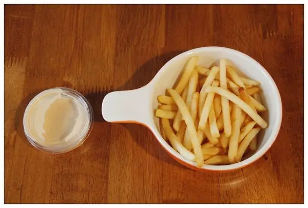熱呼呼的薯條搭配附上的黑松露蜂蜜醬很夠味!