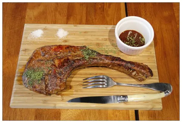 烤得恰到好處的戰斧豬排一上桌就散發著誘人的香氣~