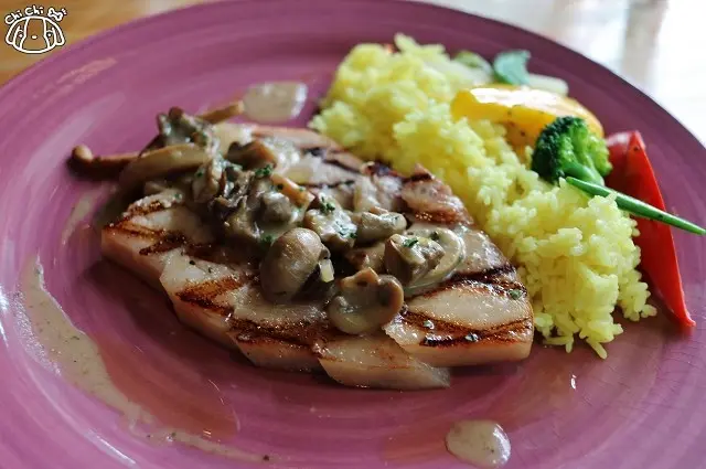 丹麥帶皮豬里肌佐紹興奶醬 $360