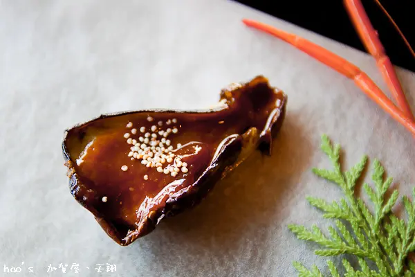 約莫指頭大小的日本茄子切半加上味噌醬(?)及芝麻,口味濃郁偏甜