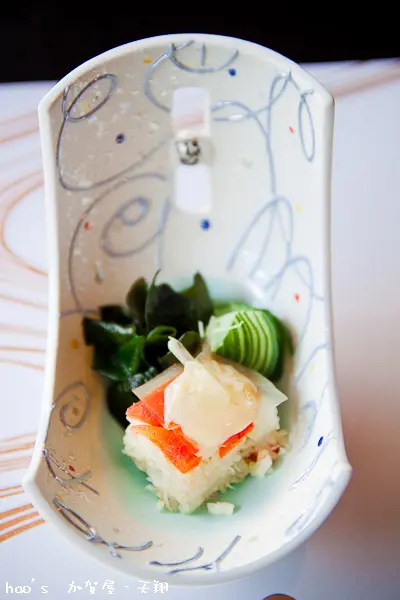印象中是山藥切成細絲,淋上微酸的和風醬汁,上頭搭上二小串細密如米粒的海菜-海葡萄,