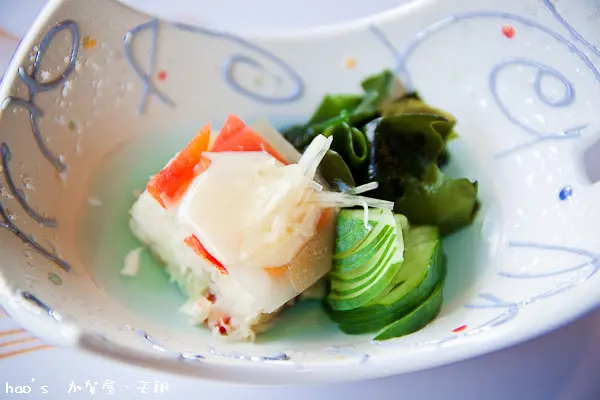 所謂醋肴就是醃製蔬菜切塊,番茄、高麗菜絲、昆布等,搭配海帶及小黃瓜。