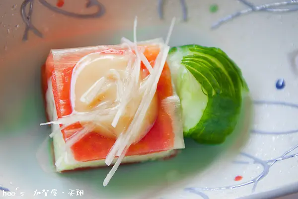 小黃瓜雕花得很美,吃來清脆爽口,但小姑吃到一塊超鹹難以入口,不曉得是怎麼回事…