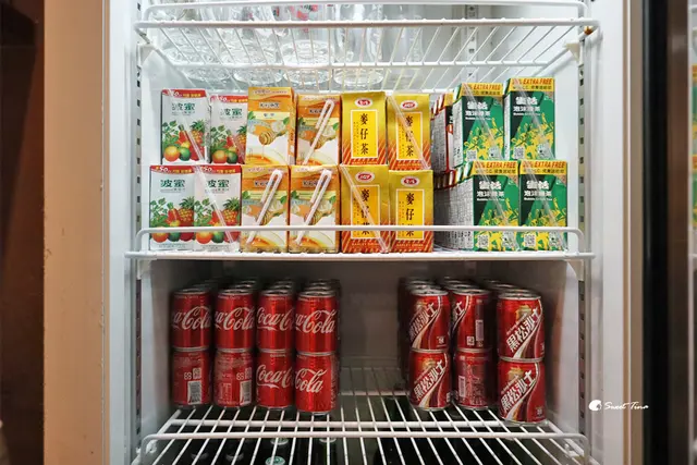 冰箱裡的飲料可以無限暢飲,而酒類則需要另外加價。