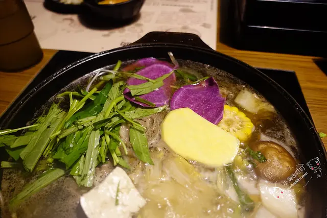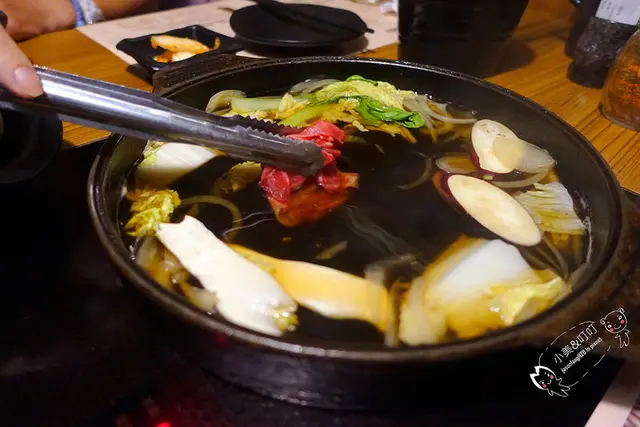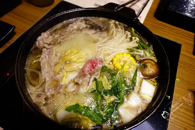 朋友事先幫我拍的照片還沒被摧殘過後這樣,鍋子也滿淺的,醬汁鹹度當然就是自己調啦