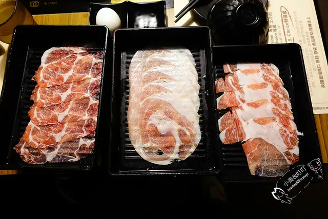 由左至右 板腱牛、煙燻豬培根、梅花豬