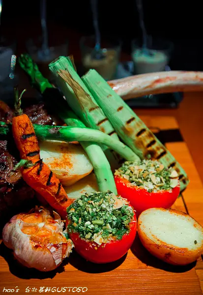 牛排燒烤得恰到好處,外層微焦香脆,內裡仍保持鮮嫩紅潤,約五分的熟度,最能品嚐到牛肉的美味。主廚細心的幫我們分切好,並且淋上特調醬汁。