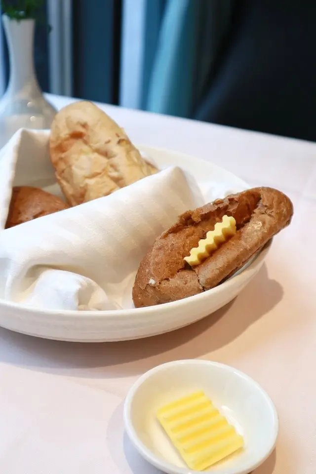 這次來用餐享用「龍蝦海陸雙人分享餐」,套餐包含麵包、湯、前菜、主餐、甜點、飲品。