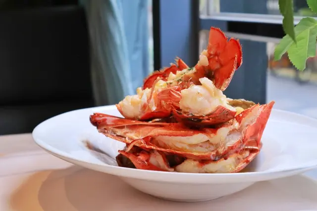 而且僅只簡單蒸烤過的龍蝦口感緊實彈牙、自然鮮甜,入口的瞬間似是被浪花襲捲的鮮,