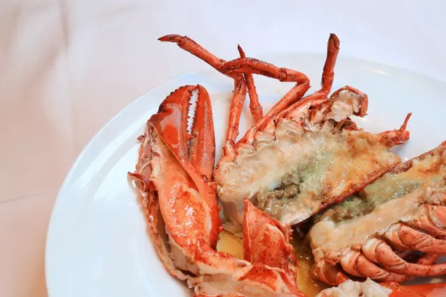 前菜告一段落,接著上主菜前服務員會上一系列吃龍蝦的餐具、刀叉,還貼心給了吃龍蝦的紙圍裙,避免噴濺到衣服,