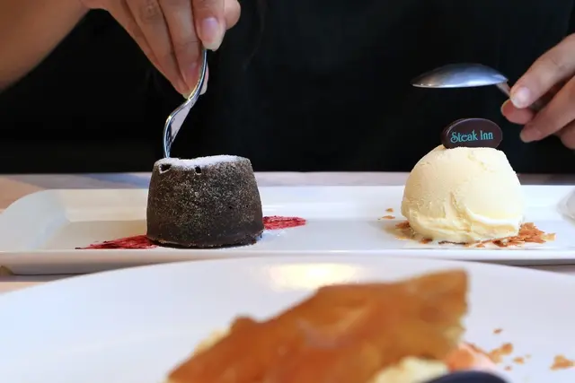 雅室招牌甜點之一,冰冰涼涼的冰淇淋佐上熱呼呼的熔岩巧克力蛋糕,