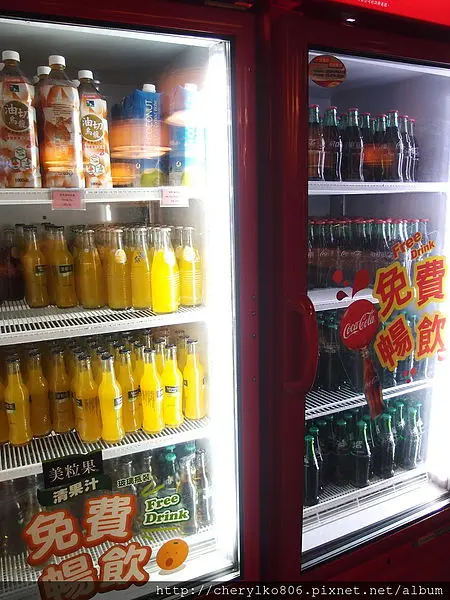 除了一般的可樂、雪碧之外,還有美粒果。另外,也有需額外付費購買的烏梅汁。