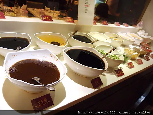 醬料台可選擇的火鍋醬料不少,從基本的醬油、沙茶醬,到比較特殊的韭菜醬、日式果醋都有。