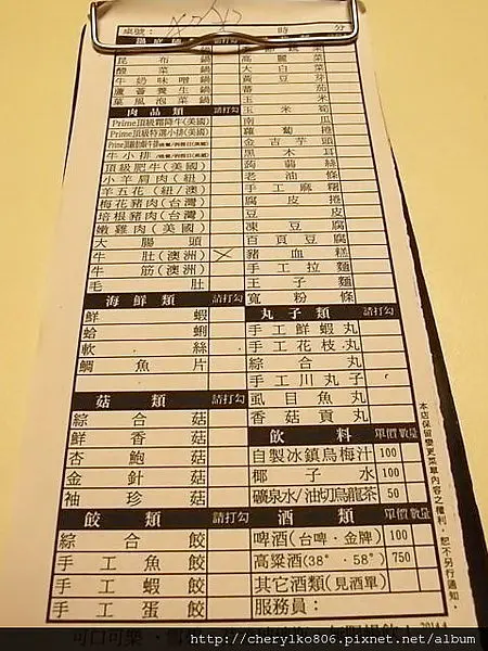 每一張桌子上,都有三張一模一樣的菜單,一次填寫一張,把想吃的食材勾選好,拿給服務生就行了。