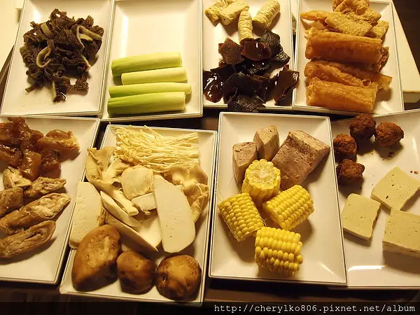 不一會兒,服務人員幫我們把桌子旁的折疊架攤開,送上肉品以外的火鍋料。
