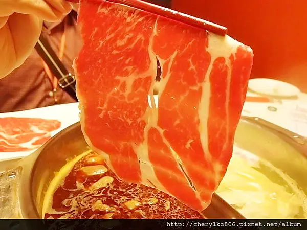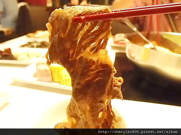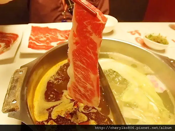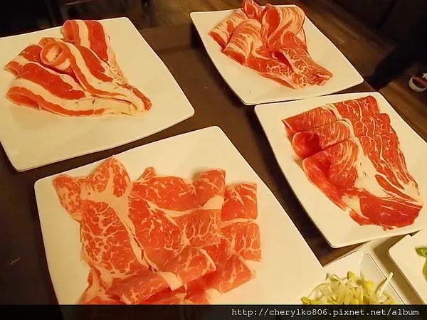 紅白相間的牛肉片,相當新鮮,不同的部位,油花分布也不太相同,不過都很均勻漂亮。
