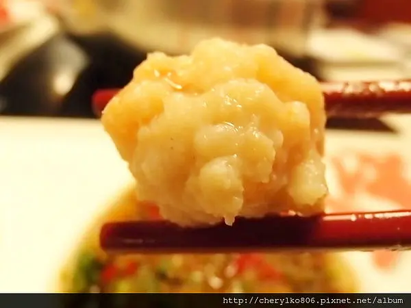 真材實料的鮮蝦丸,可以看見點點蝦肉塊在裡面。