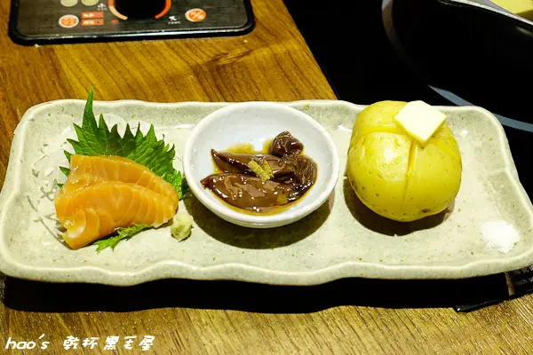 照片由左至右為煙燻鮭魚、沖漬螢烏賊、奶油馬鈴薯 。