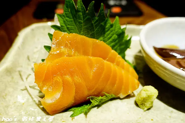 淡橘帶紅的燻鮭魚,細緻柔軟,煙燻香氣及鹹味都恰到好處,沾些現磨芥末,辛香更能襯托出鮭魚的豐美油潤。