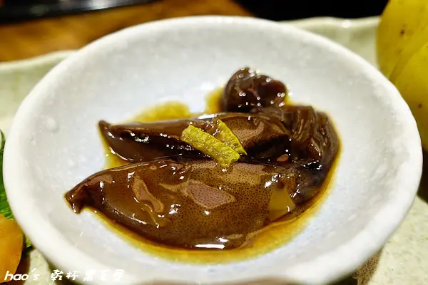 入口先是感受其強烈海洋鮮香,再來是醃漬而成的濃郁風味,微勁微顯辛辣,口感軟嫩帶些脆度。