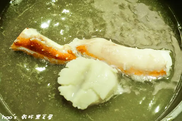 黑毛屋的鱈場蟹鍋,主角當然就是鱈場蟹(帝王蟹),毫不吝惜地提供二大隻蟹腳、數塊蟹身。