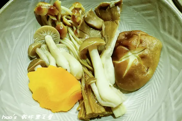 蔬菜類有多種菇類、白山藥、鮮綠山茼蒿、豆苗、白綠相間的白菜、萵苣、紅蘿蔔、黑木耳、玉米筍等