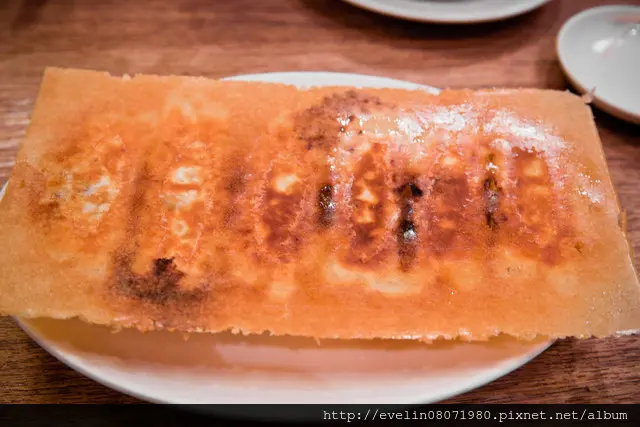 上桌是倒過來的,方方正正的一層麵皮,煎得香脆。