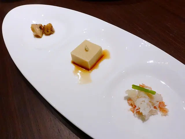 ▼開胃菜最左邊忘記是什麼、中&右分別是胡麻豆腐、蟹肉