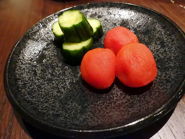 ▼餐後甜點之前還有烏龍麵,附上醃黃瓜和梅漬番茄去味