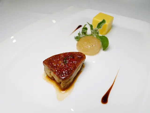 鴨肝上的醬汁似辣椒蒜頭醬油,口味蠻中式