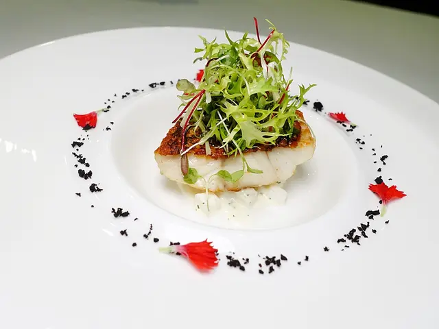 使用石斑魚,可搭著盤邊的黑橄欖碎食用